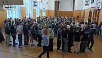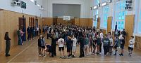 Žáci druhé stupně měli možnost během dopoledne vydatně sportovat. Ve dvou tělocvičnách hráli fotbal, házenou, volejbal, přehazovanou.