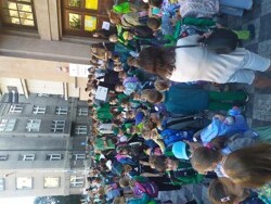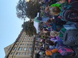20.9.2023Jako každý rok i letos jsme společně žáci, paní učitelky, paní asistentky, páni učitelé i někteří rodiče vyrazili pěšky do školy. 20. září v 7:30 jsme se sešli na Šesťáku. Přišli jsme oblečeni do zeleného oblečení a za zvuků nástrojů a ozdobeni transparenty jsme vyrazili ukázat všem kolemjdoucím i řidičům, že chodit pěšky do školy je bezva. Někteří z nás přijeli i na koloběžkách. Před školou na nás čekali deváťáci a společně jsme si zatančili, třeba Macarenu. Myslím, že bychom takto mohli začínat školní dny častěji.